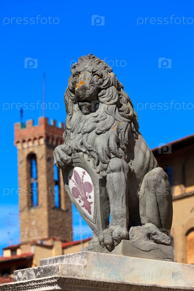 Геральдический лев рядом с Палаццо Веккьо. Флоренция. Италия