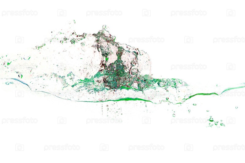 Всплеск воды психоделического зеленого цвета крупным планом на белом фоне