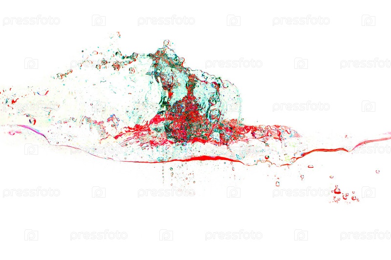 Всплеск воды психоделического красного цвета крупным планом на белом фоне