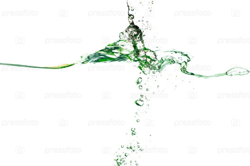 Всплеск воды психоделического зеленого цвета крупным планом на белом фоне