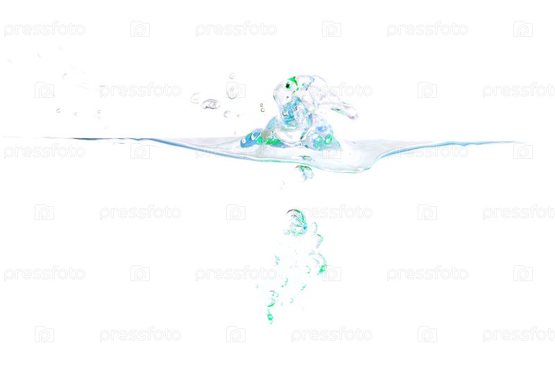 Всплеск воды психоделического зеленого цвета крупным планом на белом фоне