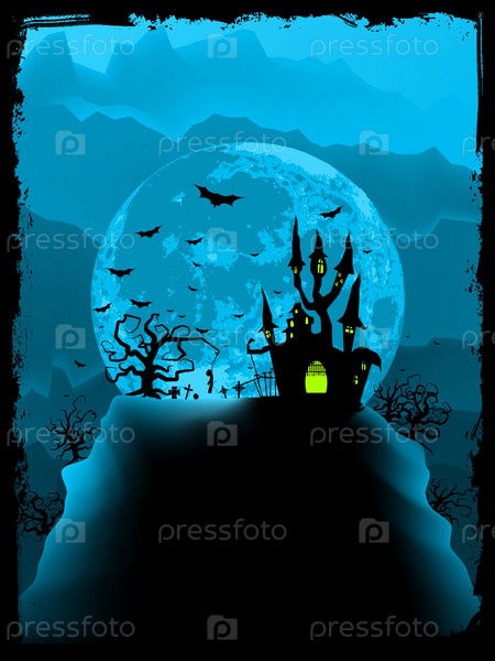Страшное волшебное аббатство на Хэллоуин.Векторный файл EPS 8 включен