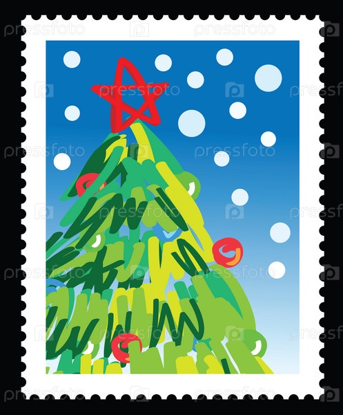 Рождественская марка с елкой