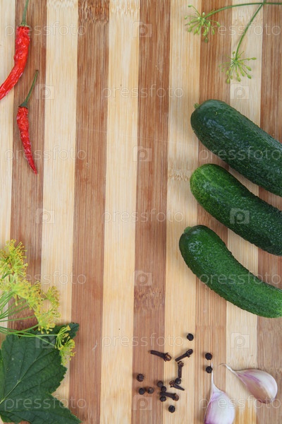 Огурцы для консервирования на деревянной доске