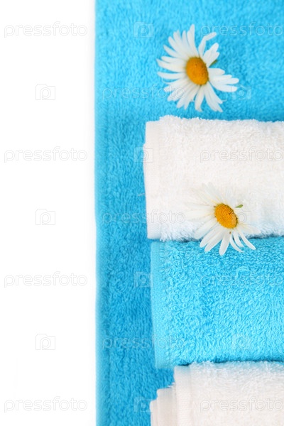 Белые и синие полотенца с ромашками
