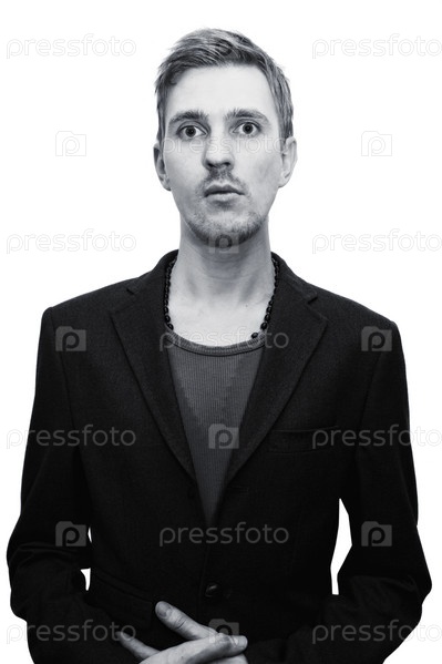 Портрет молодого человека в пиджаке на белом фоне