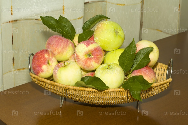 Яблоки с зелеными листьями