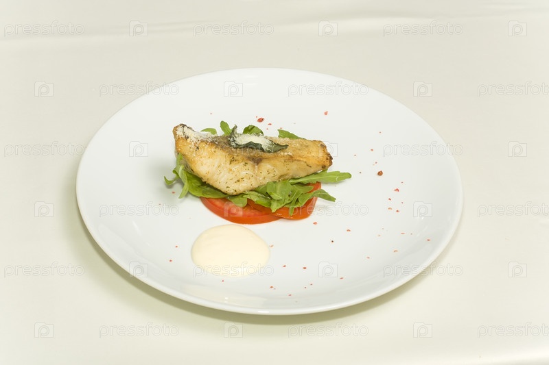 Запеченная рыба на тарелке крупным планом