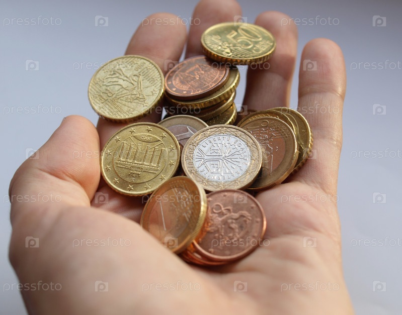 Монеты евро (европейская валюта) в ладони