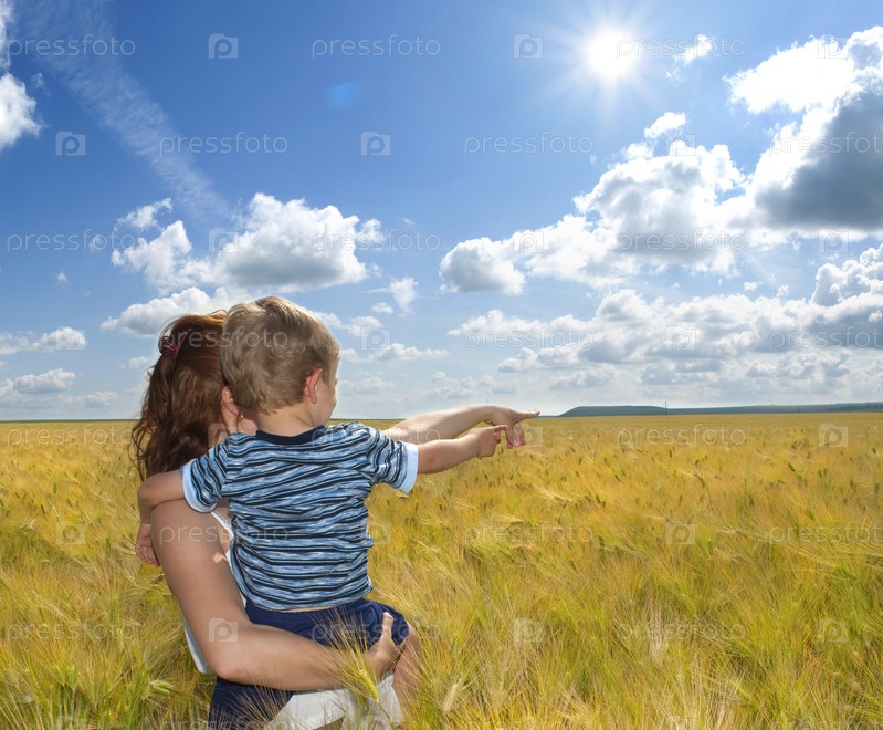 Мать и сын на пшеничном поле