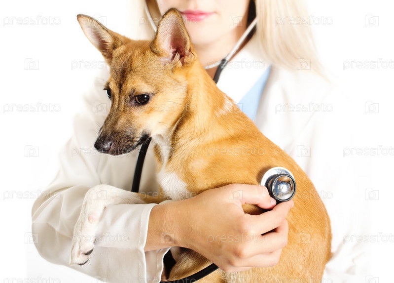 Рыжий щенок у ветеринара