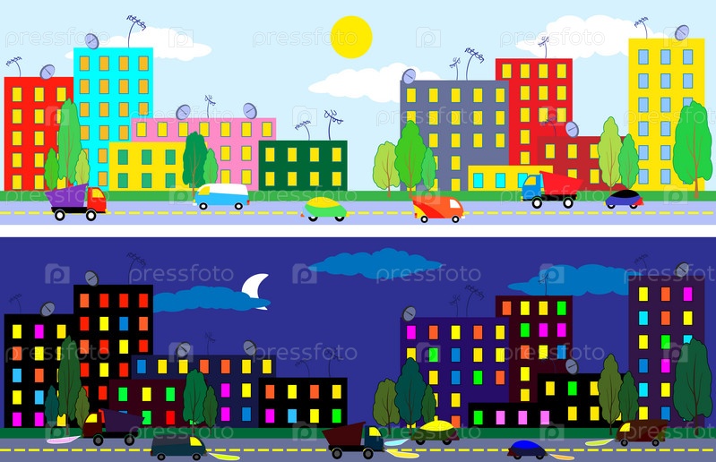 Город ночью и днем