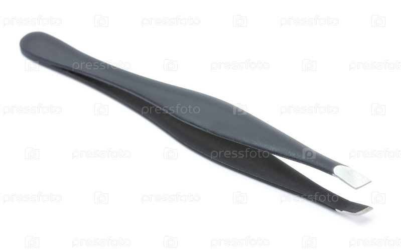 Металлический пинцет для бровей на белом фоне