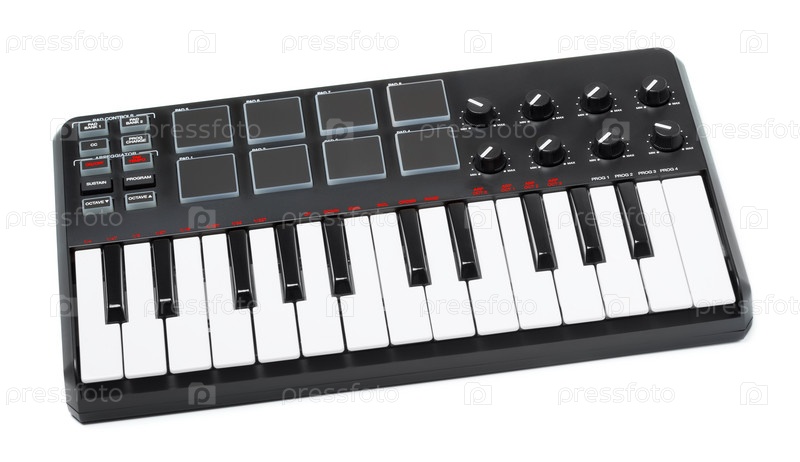 Цифровая midi-клавиатура, изолированная на белом фоне