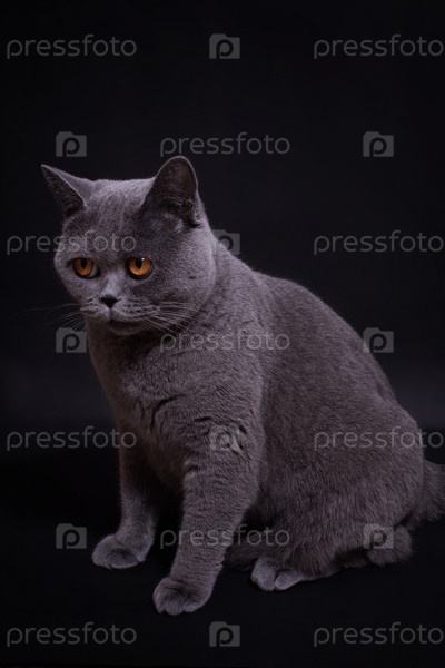 Серая британская кошечка на черном фоне