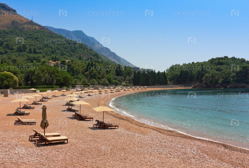 Розовый песчаный пляж Милочер в шести километрах юго-восточнее города Будва, Черногория