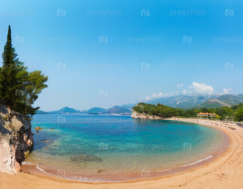 Розовый песчаный пляж Милочер в шести километрах юго-восточнее города Будва, Черногория