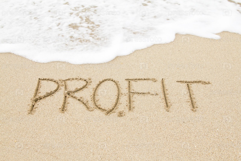 Слово выгода на песке у воды