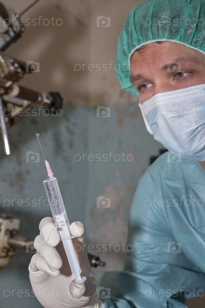 Хирург готовит инъекцию перед операцией
