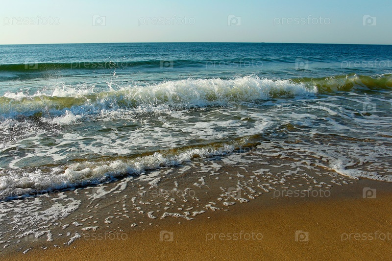 Прибой на берегу Черного моря (Украина) в солнечный летний день
