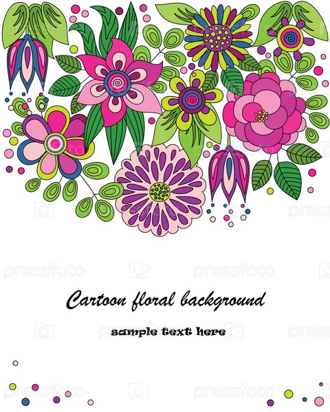 Декоративный яркий мультипликационный векторный фон с цветами