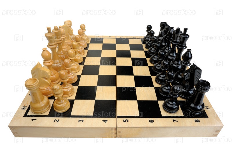 Шахматные фигуры, расставленные не доске перед началом матча