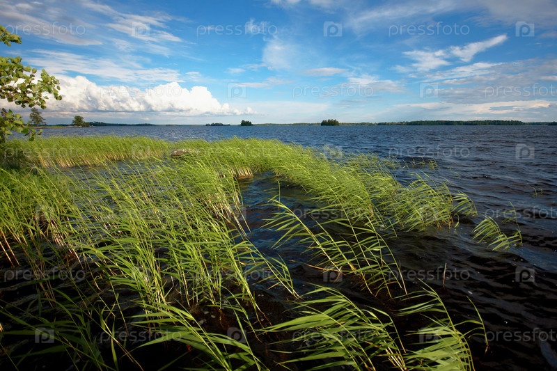 Пейзаж с озером и облаками
