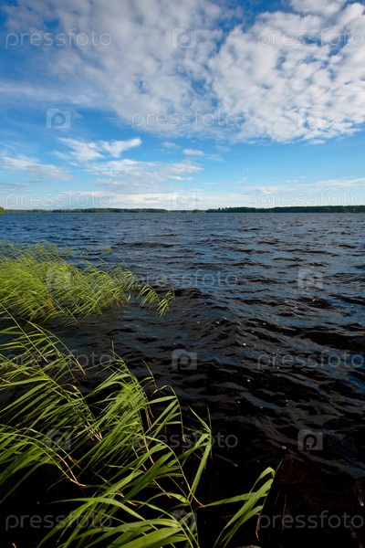Пейзаж с озером и облаками