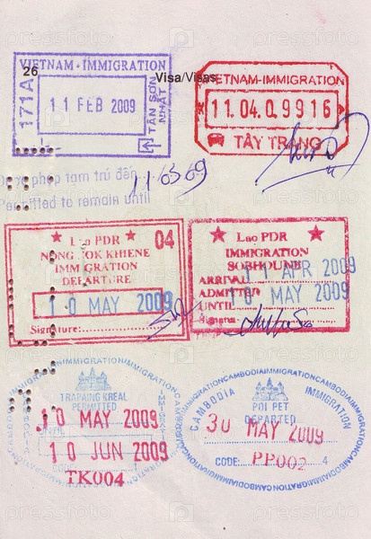 Почтовые штемпели входа и выхода разных стран