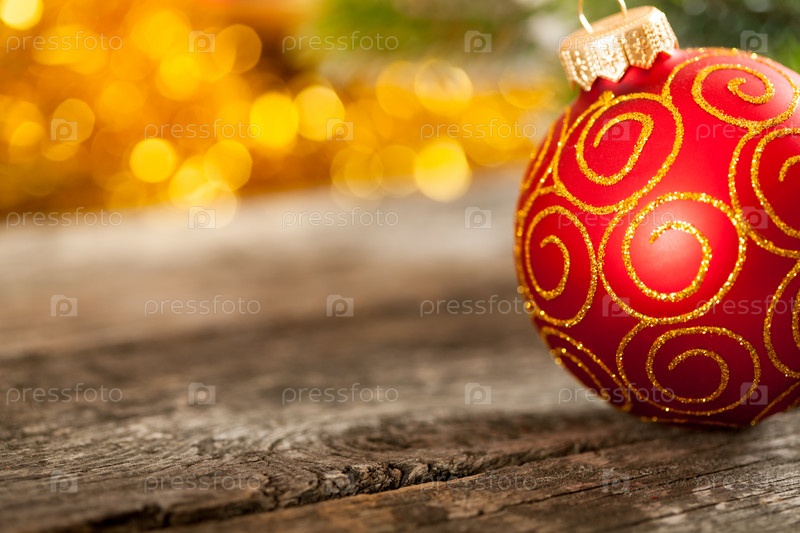 Красный рождественский шар на столе