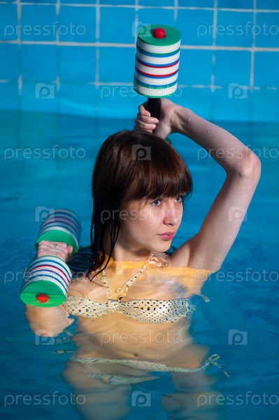 Молодая женщина занимается фитнесом в бассейне
