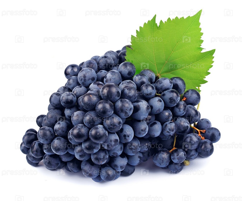 Красный виноград с зелеными листьями на белом