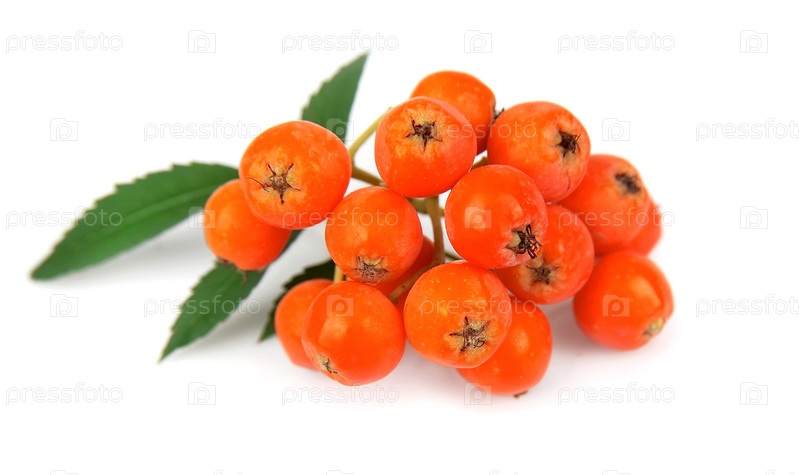 Рябина крупным планом на белом