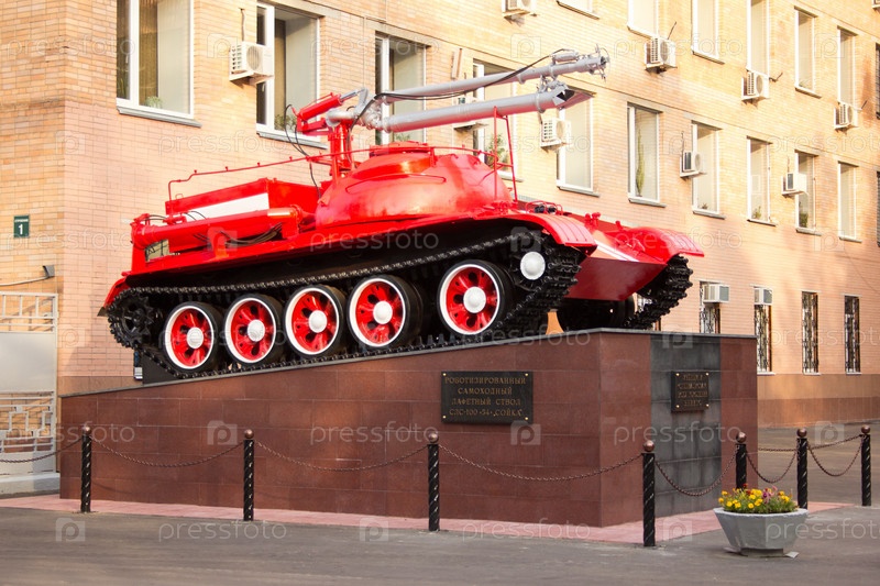 Памятник противопожарной технике -роботизированный самоходный лафетный ствол СЛС-100-54 "Сойка". Всеросийский Научно-исследовательский институт пожарной охраны