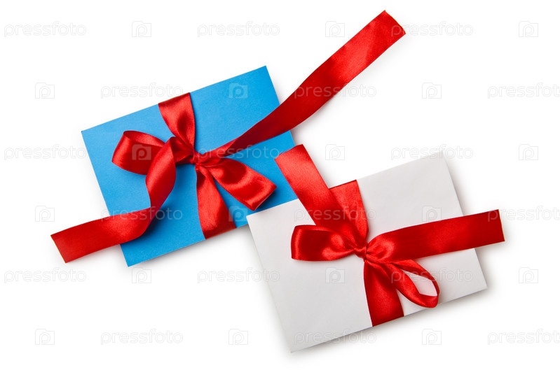 Конверты с красочными лентами на белом фоне