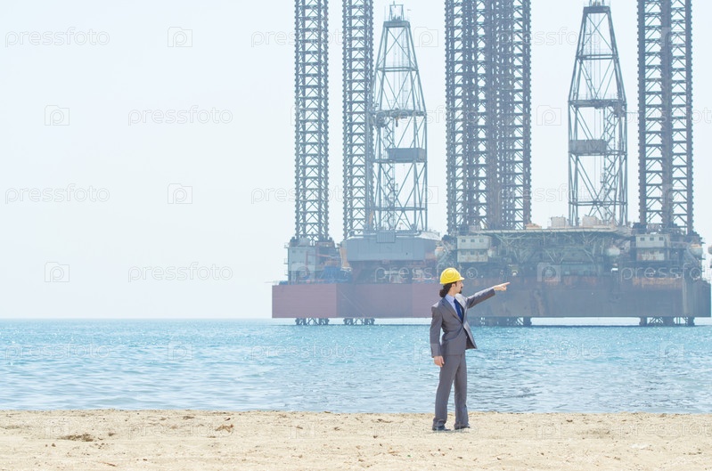 Нефтяной инженер нефти на берегу моря