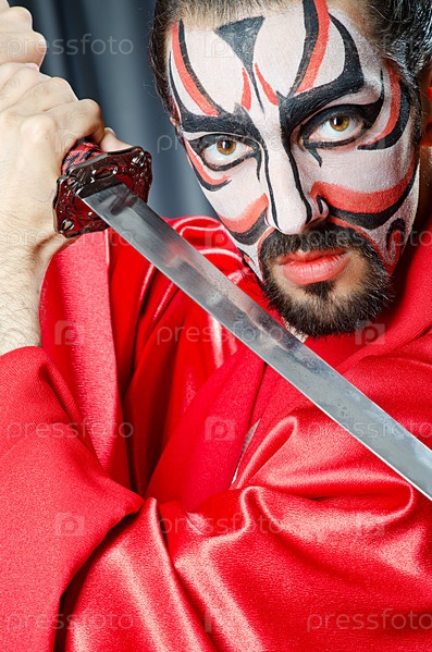 Человек с мечом и маской на лице