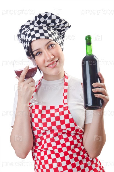 Женщина-повар, изолированная на белом