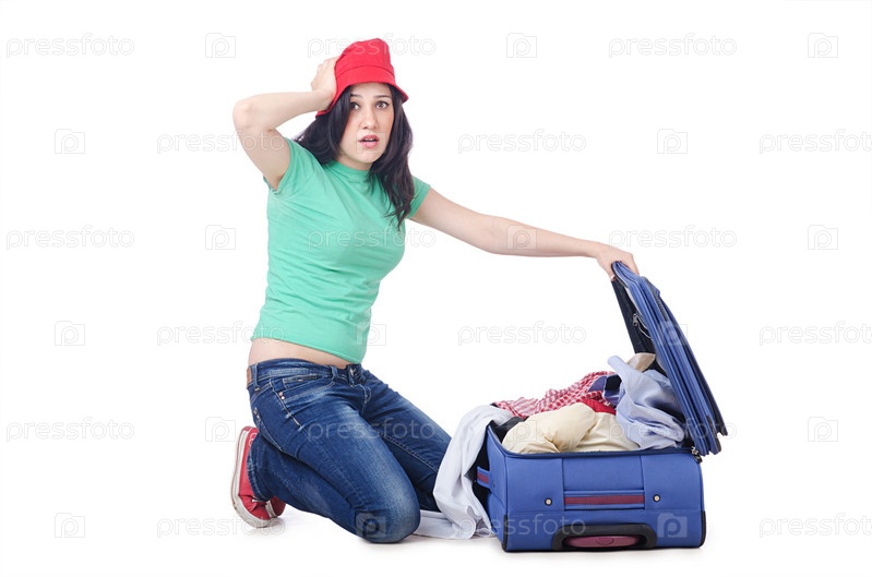 Девушка кпакует веши для путешествия