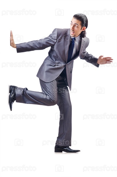 Молодой предприниматель толкает невидимое препятствие