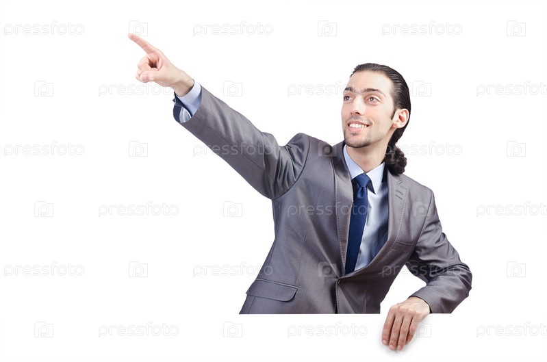 Бизнесмен с пустым плакатом