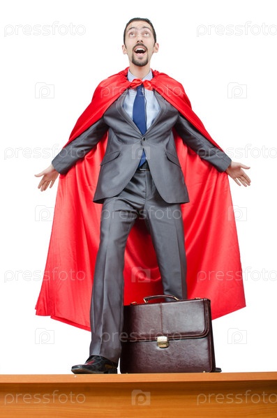 Человек в красном плаще на белом фоне