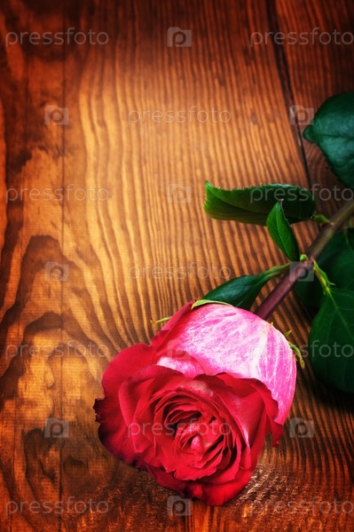 Красная роза на деревянной поверхности
