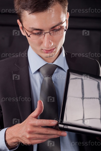 Мужчина в очках на темном фоне