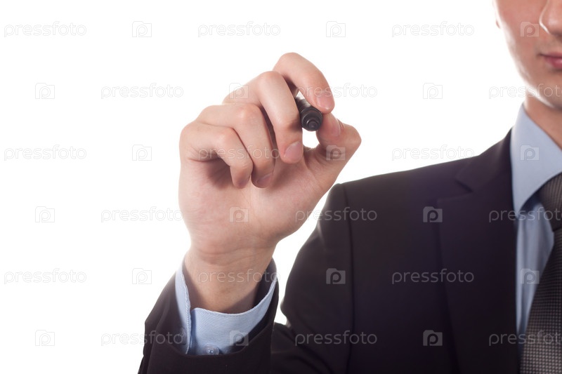 Человек пишет или рисует на экране, изолированный на белом фоне