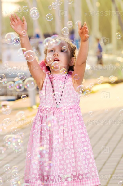Девочка танцует с пузырьками