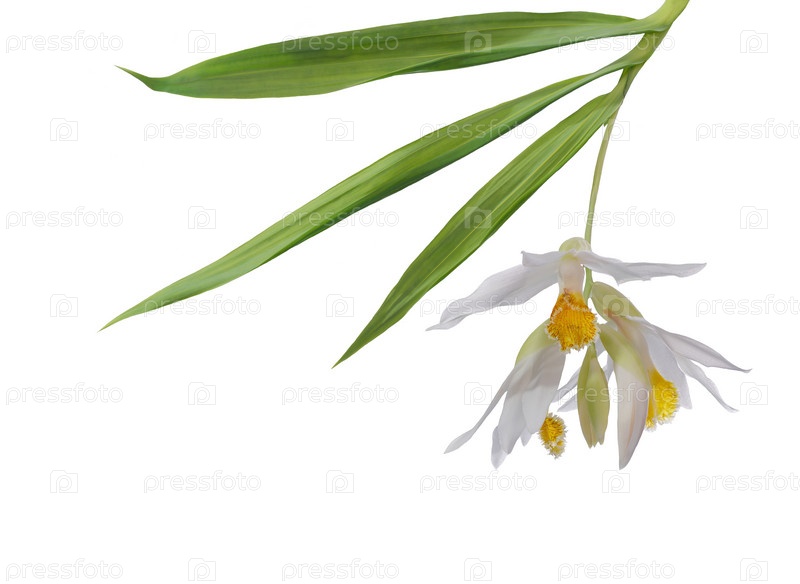 Нежная белая орхидея на белом фоне