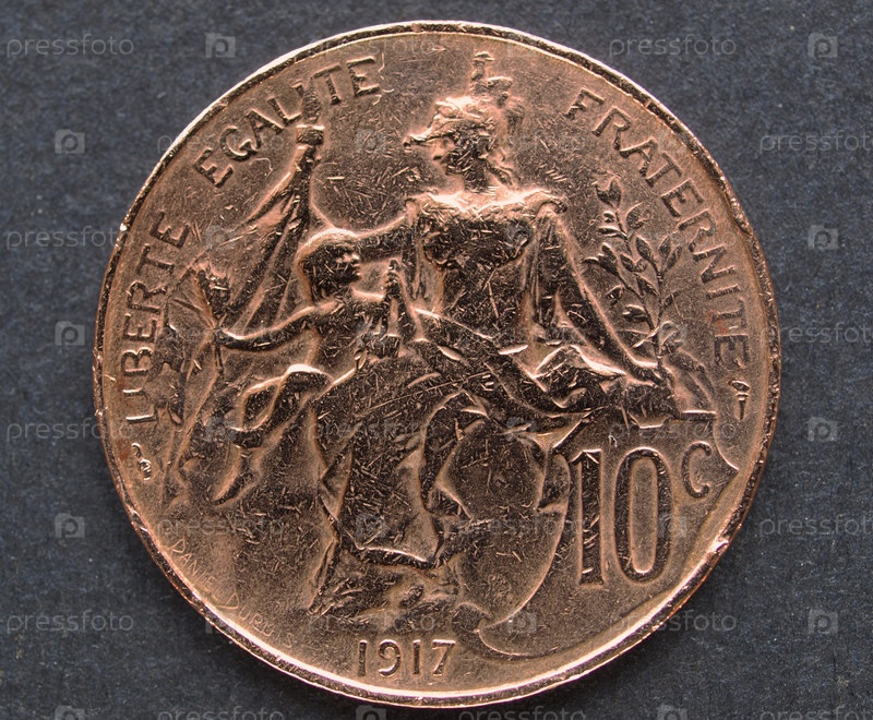 Старинная французская монета с изображением Французской Республики как красивой женщины