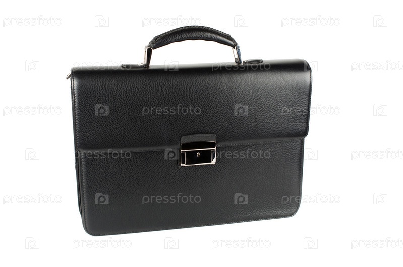 Черный мужской портфель, изолированный на белом фоне