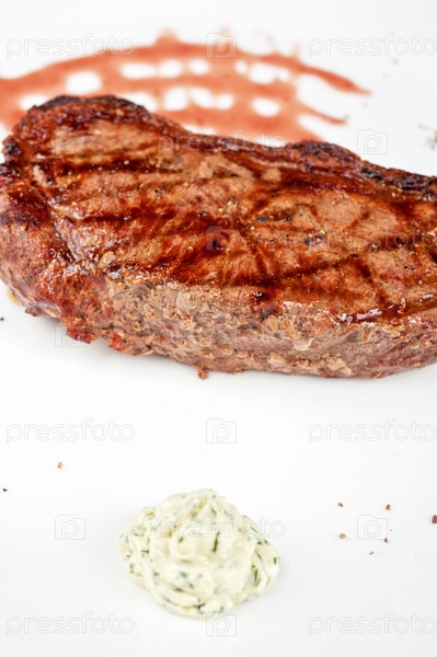 Сочный стейк рибай из говядины на белом фоне